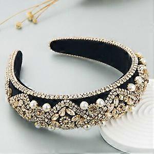 Women Padded Rhinestone Headband Crystal Hairband Pearl Hair Hoop