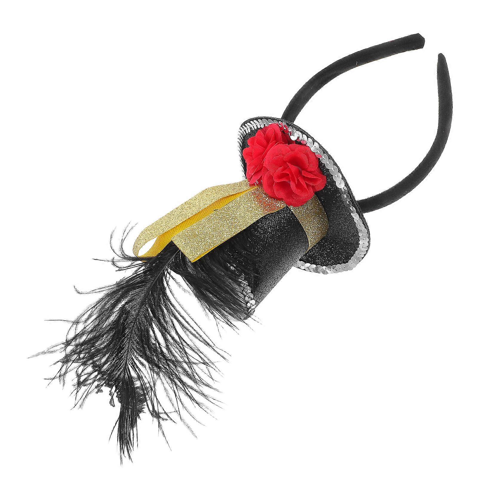 Black Mini Top Hat Fascinator Headband for Decor Made with Nonwoven Fabric and Plastic 6.5 Inches