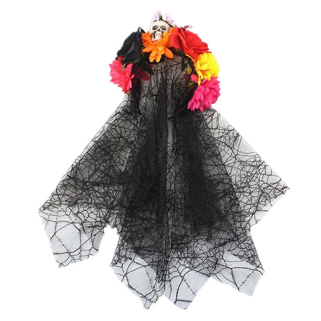 Black Veil Flower Crown Gothic Day of The Dead Headband Halloween Tiaras