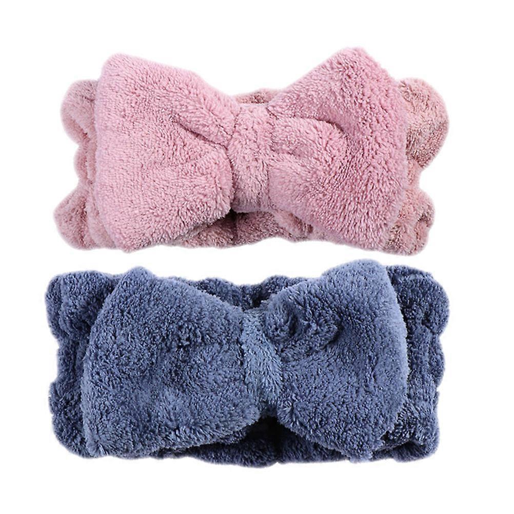 Bow Knot Fabric Headbands For Women And Girls Shower Blue Pink 2Pcs