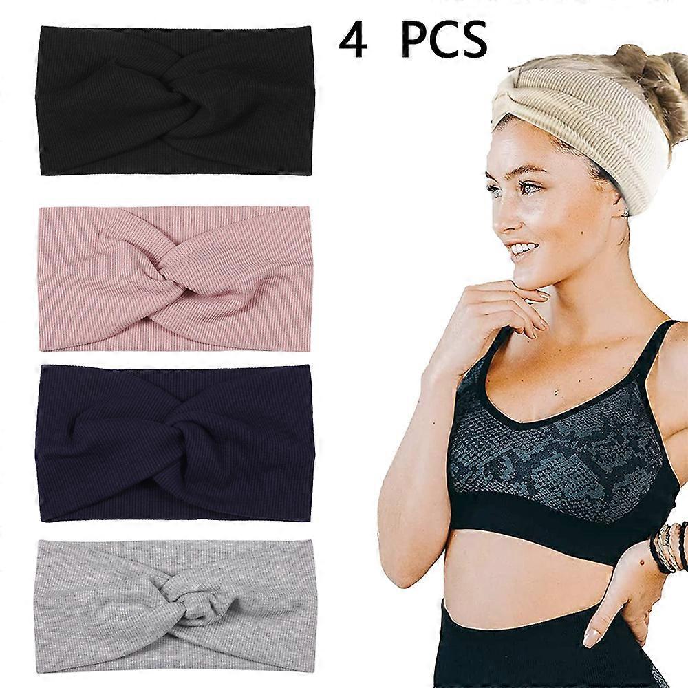 Turban Headbands compatible with Women Wide Elastic Headwraps Thick Hair Accessories, 4 Pack