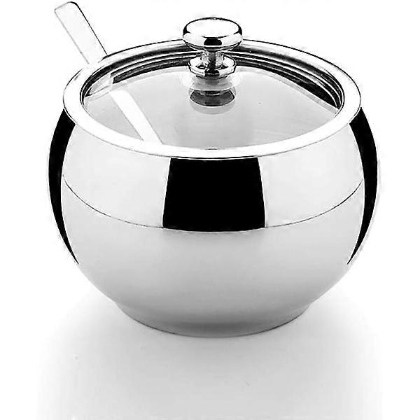 Stainless steel sugar bowl with lid and spoon