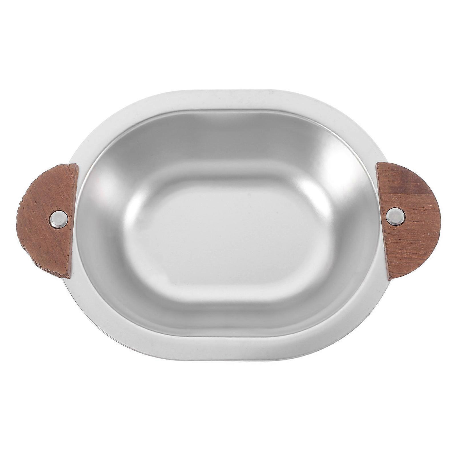 Stainless Steel Serving Bowl with Wood Handles for Home Elegant and Versatile 8.5 inches