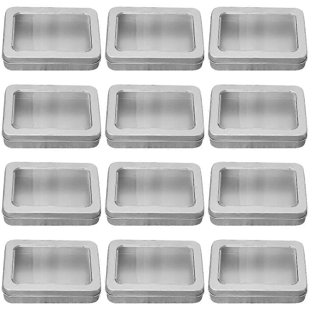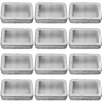 Tin Containers With Lids Rectangular Tin Boxes For Home Use Silver 11.5X8.5X2Cm Storage 12Pcs