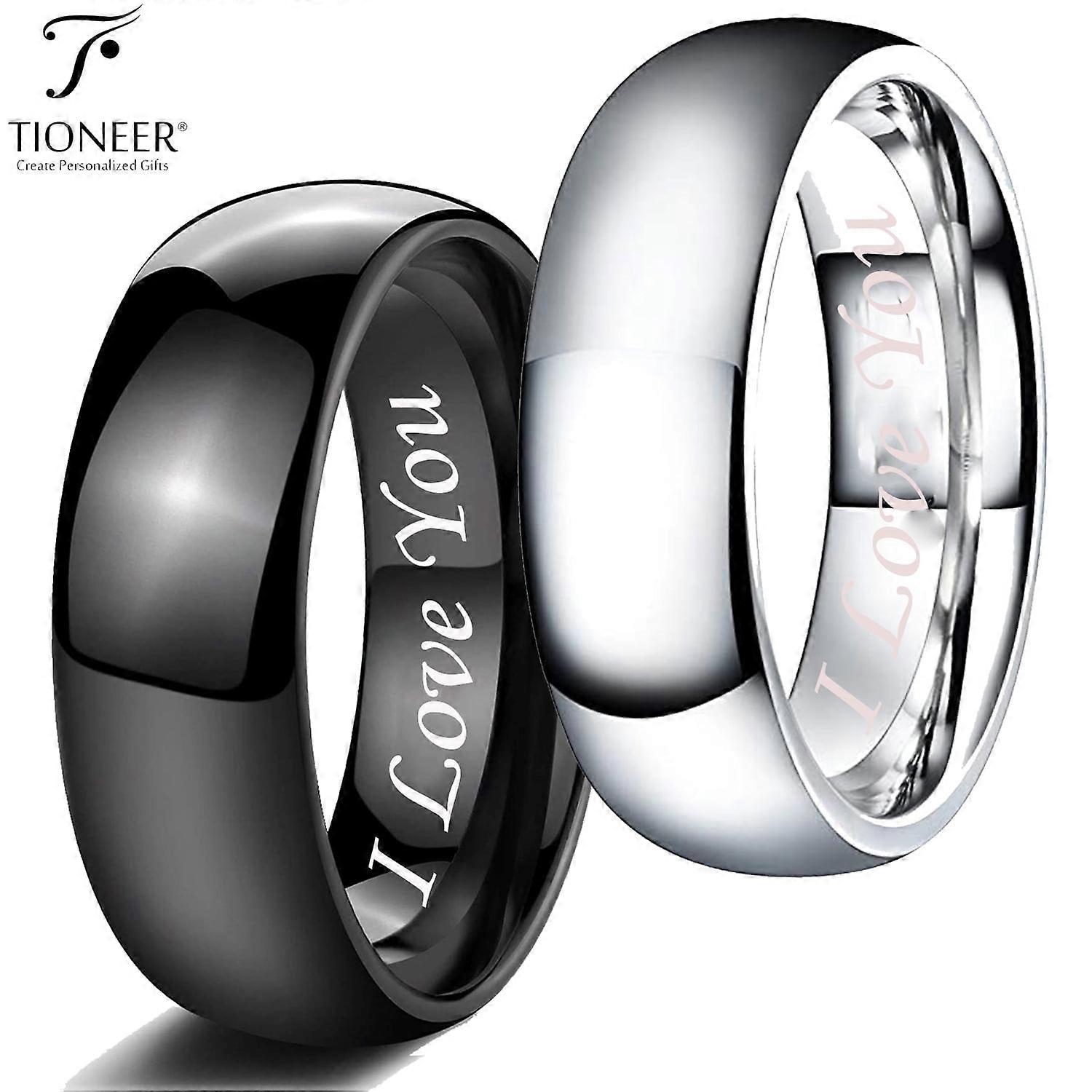 Tioneer Tungsten Carbide Classic Polished Plain Dome Wedding Band Promise Ring I love You Engraved 8MM