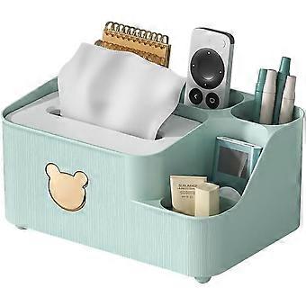 Tissue Box Rectangular, with Side Organizer,Facial Tissue Holder for compartments Holding iPad Phones,Remote Controls,Reading Glasses (Medium-Green)