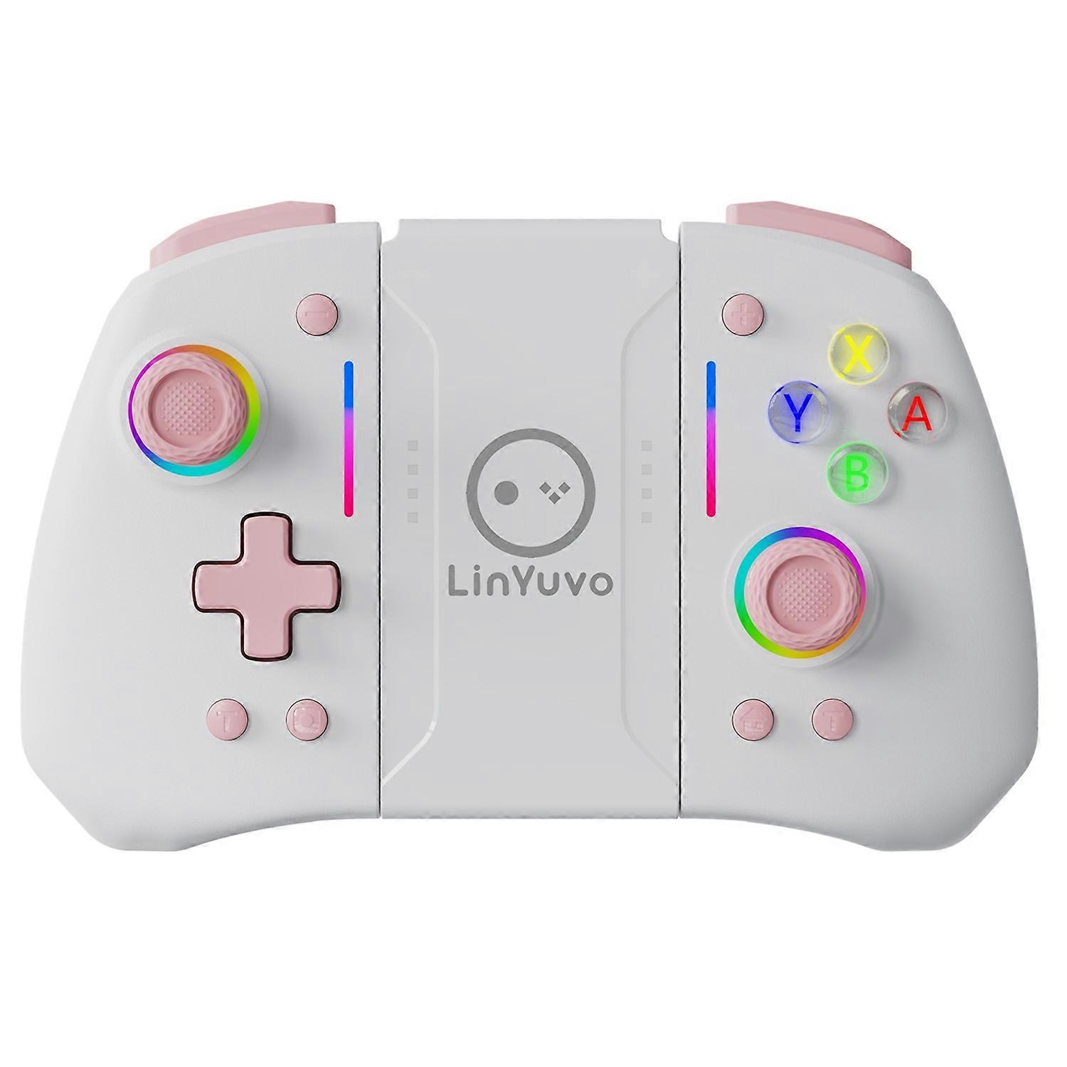 TKdaddy LINYUVO For Nintendo Switch / Switch Lite / Switch OLED Joy-Con Wireless Controller with RGB Backlit and Turbo Function White / Pink