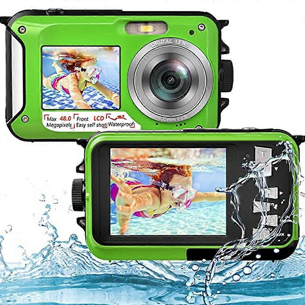 TKdaddy WP06 1.8 Inch Front + 2.7 Inch Rear Dual Screen 48MP 2.7K HD Digital Camera for 3m Underwater Photography, with 32GB Card Green