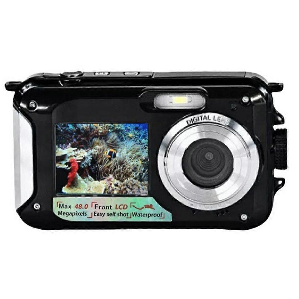 TKdaddy WP06 1.8 Inch Front + 2.7 Inch Rear Dual Screen 48MP 2.7K HD Digital Camera for 3m Underwater Photography, with 32GB Card Black