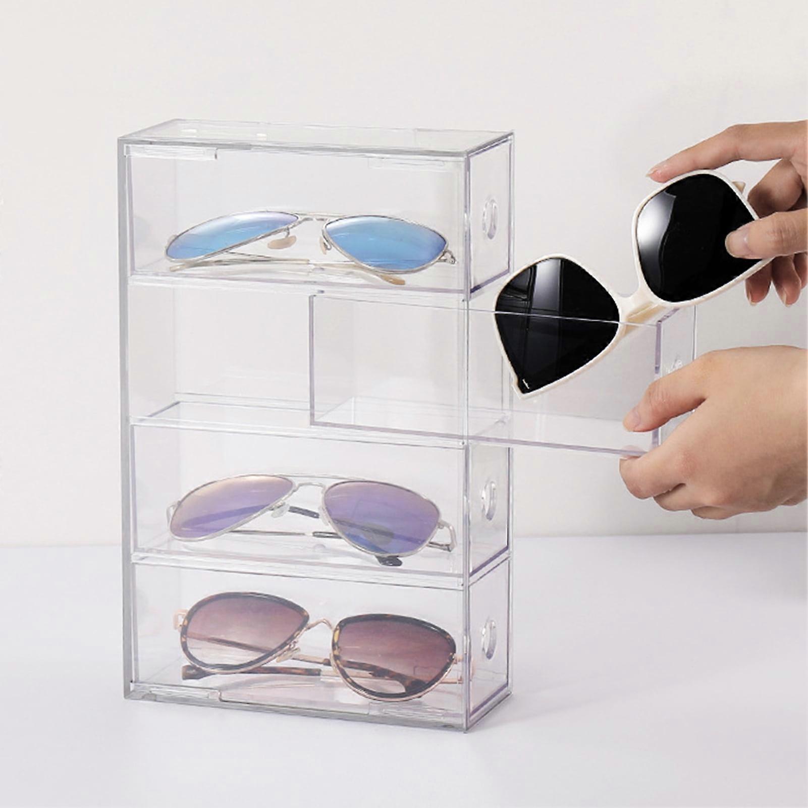 Tnobhg Sunglasses Storage Box Pull-out Drawers Four Layers Stackable Dustproof Clear Desktop Glasses Display Stationery Organizer Container