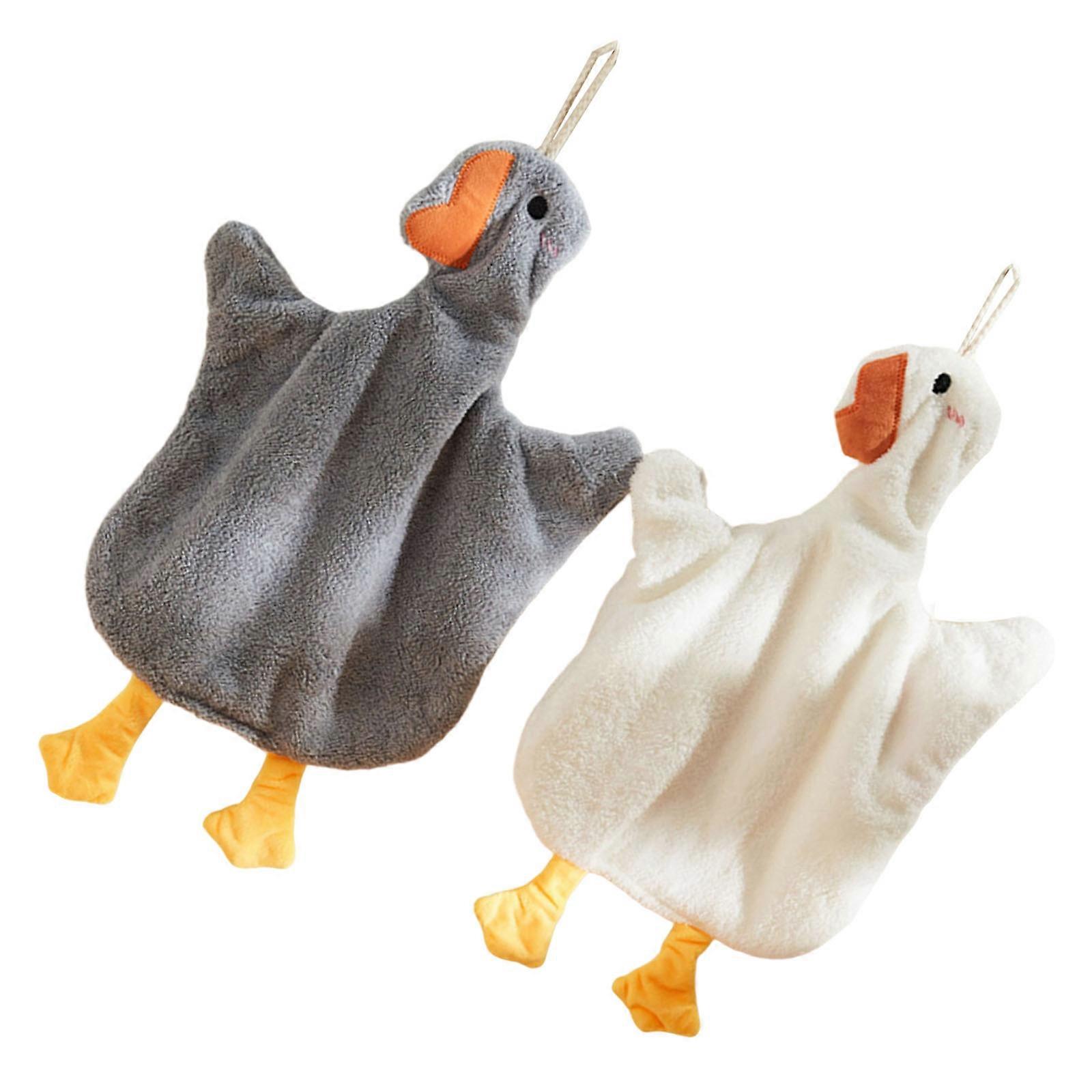 Cute Cartoon Gooses Hand Towel Soft Corals Fleece Wipe Rag with Lanyard Handkerchief for Easy Hanging in Kitchen Bathroom Multicolor
