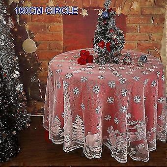 Toalha de Mesa Bordada de Natal com Design de Alce de Papai Noel Boneco de Neve Redondo 60"