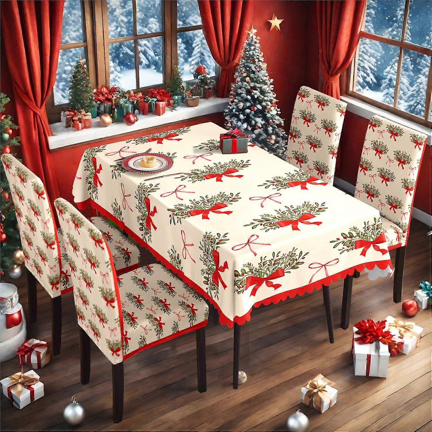 Classic Red Christmas Snowflake Tablecloth Chair Cover Christmas Waterproof Print Tablecloth Set TC-260 Set (140*210cm Waterproof Tablecloth + 4