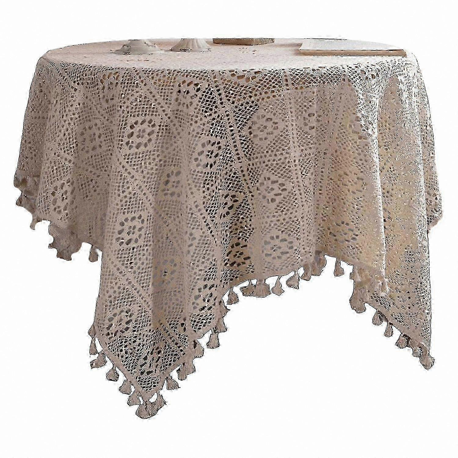 Handmade Cotton Tablecloth with Lace Border and Openwork Pattern Design