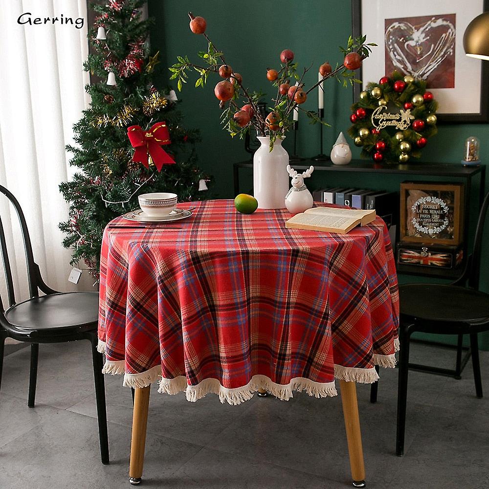 Gerring Christmas Coffee Table Cover Yarn Dyed Plaid Holiday Wedding Deco Tablecloth American Round Tassel Table Cloth For Party