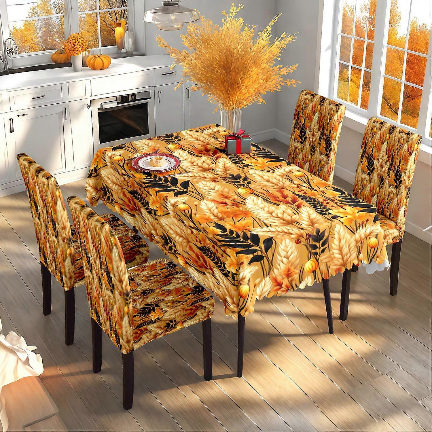 Thanksgiving Autumn Harvest Tablecloth Harvest Theme Print Holiday Tablecloth Set TC-321 Set (140*210cm Waterproof Tablecloth + 4 Chair Covers)