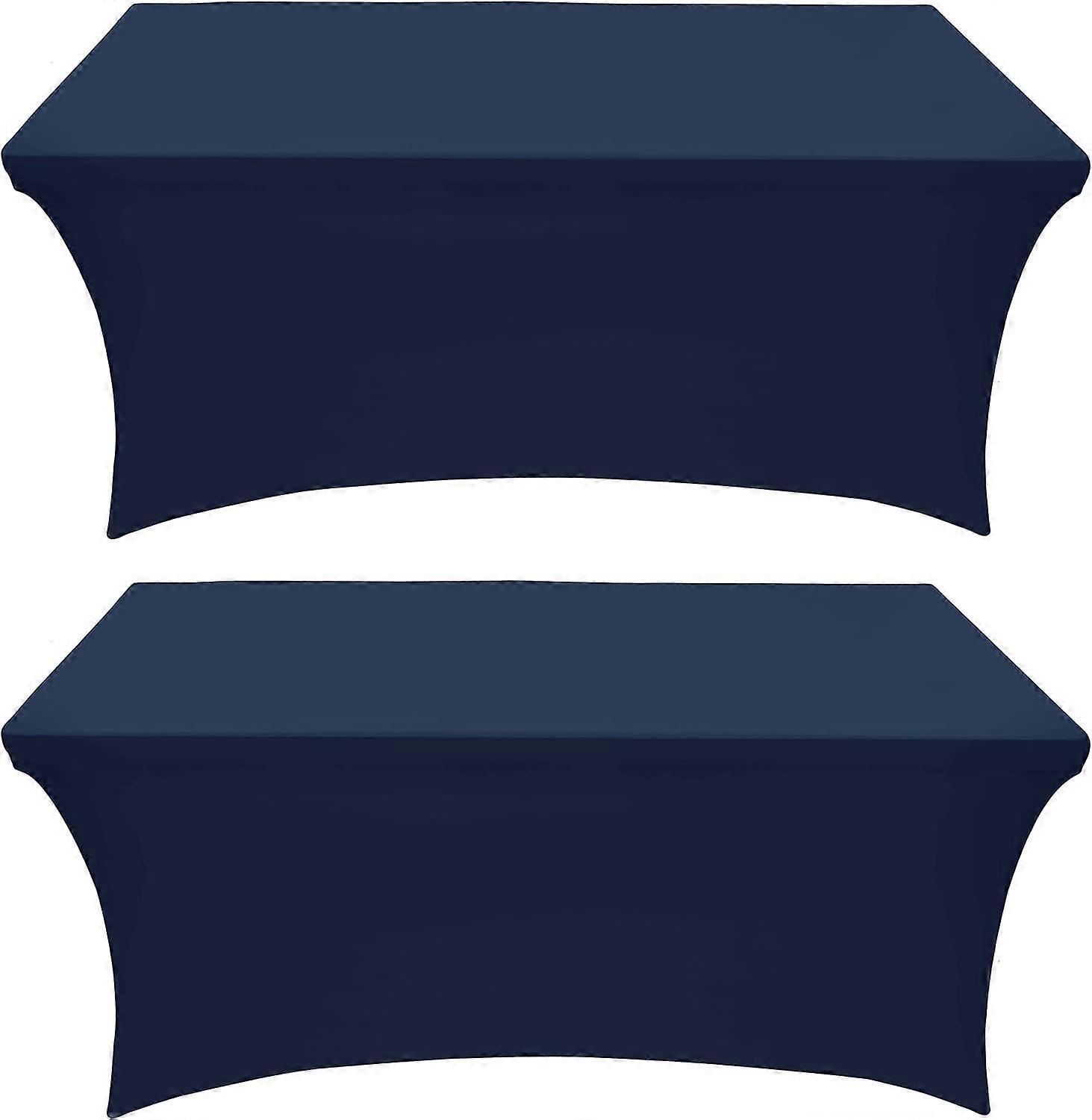 Kitchen Spandex Tablecloth 2 Pack [6FT, Navy Blue] Tight, Fitted, Washable and Wrinkle Resistant Stretch Rectangular Patio Table Cover