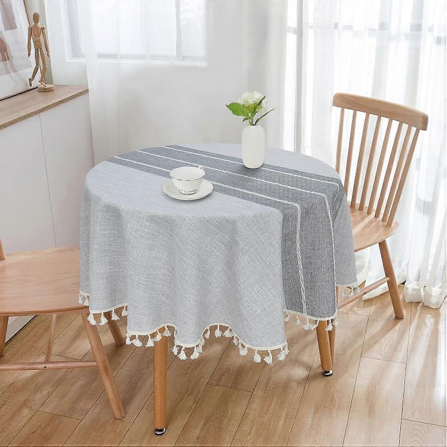 Tablecloth Fringed Cotton Linen Tablecloth for Kitchen Dining Crease Resistant Tablecloth (Coffee, 60" Round)
