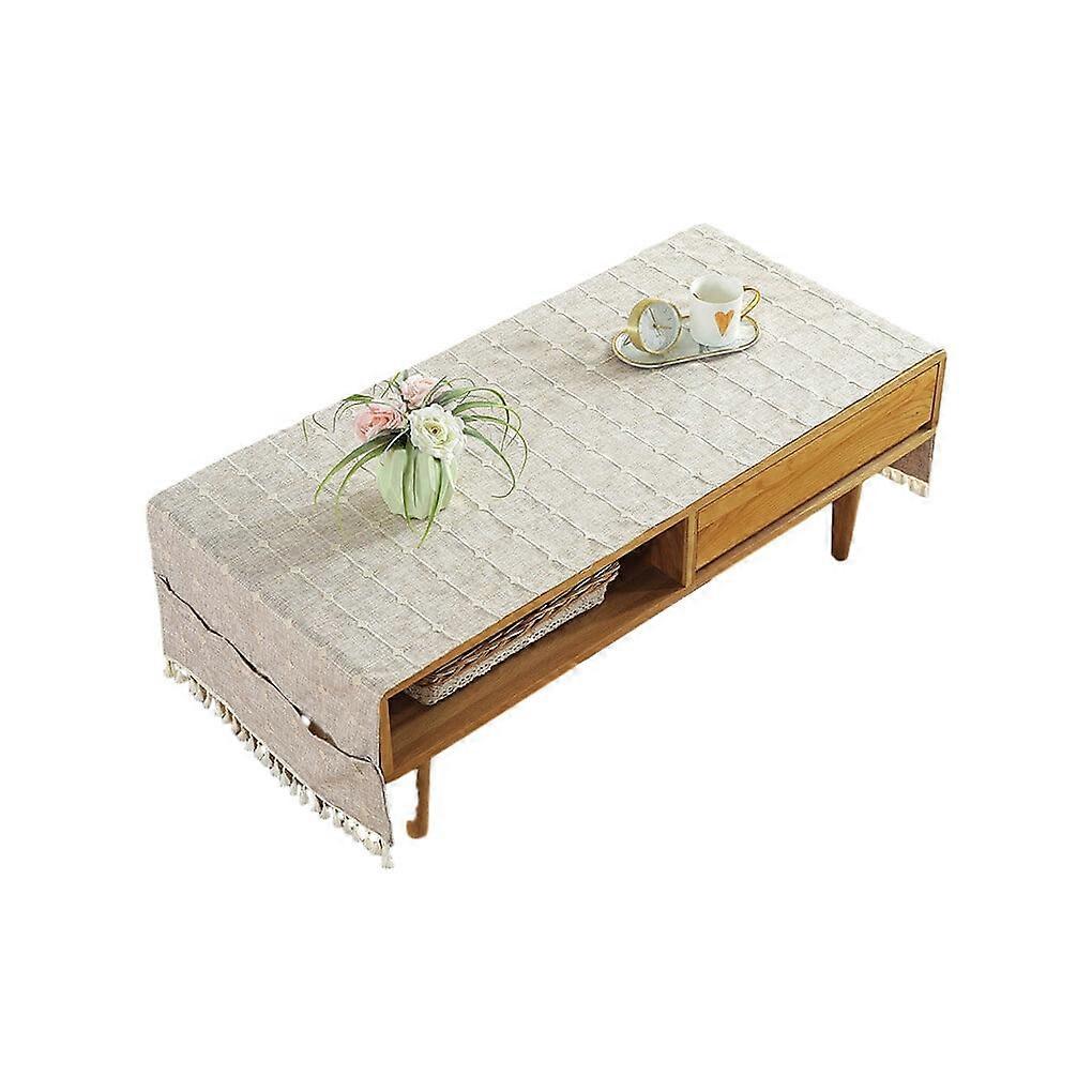 Worallymy Cotton Linen Tablecloth 70*180cm Rectangular Waterproof with Fringe, compatible with TV Cabinet Coffee Desktop, Embroid/Light Coffee