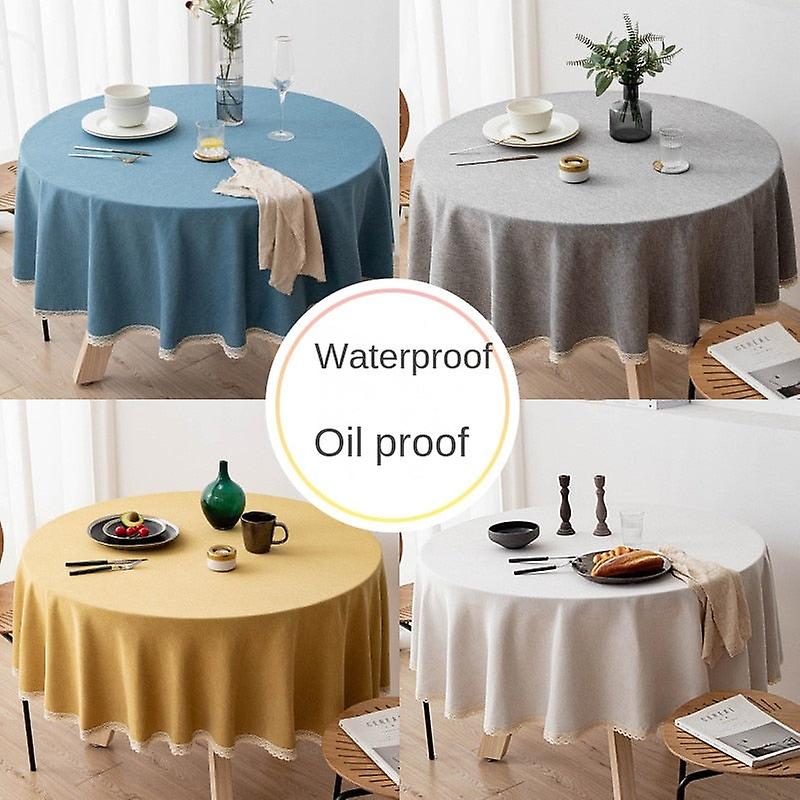 Round Linen Tablecloth Tpu Waterproof And Oil-proof Fabric Hotel Household Round Table Dining Table Cloth Tablecloth