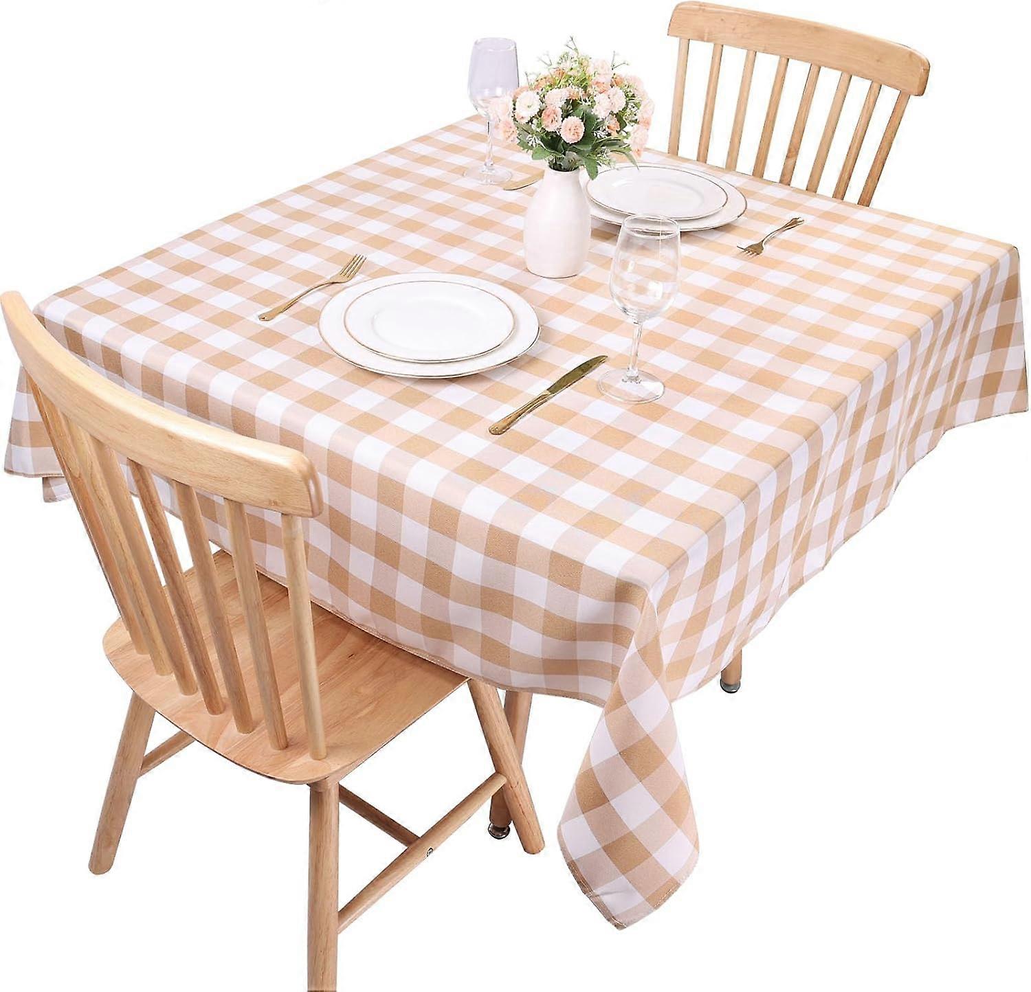 Light coffee-colored gingham polyester tablecloth 140x140cm, square checkered tablecloth spillproof and wrinkle-free