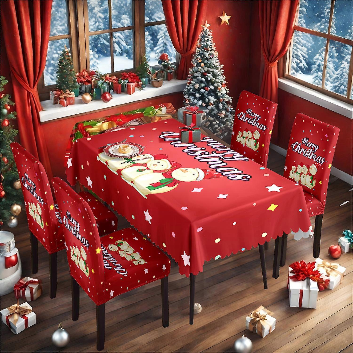2025 New Christmas Tablecloth and Chair Cover Classic Red Christmas Tablecloth Waterproof Tablecloth Stretch Chair Cover TC-92 Set (140*210cm