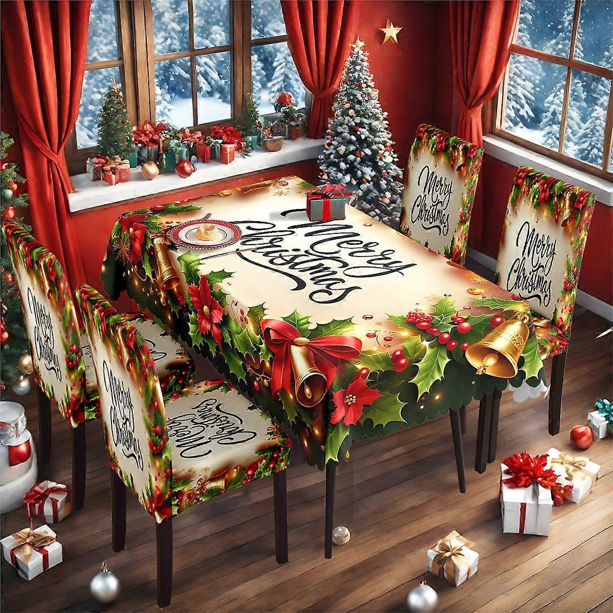 Digitally printed Christmas tablecloth and chair cover, all-inclusive tablecloth and stretch chair cover TC-65 set (140*210cm waterproof tablecloth +