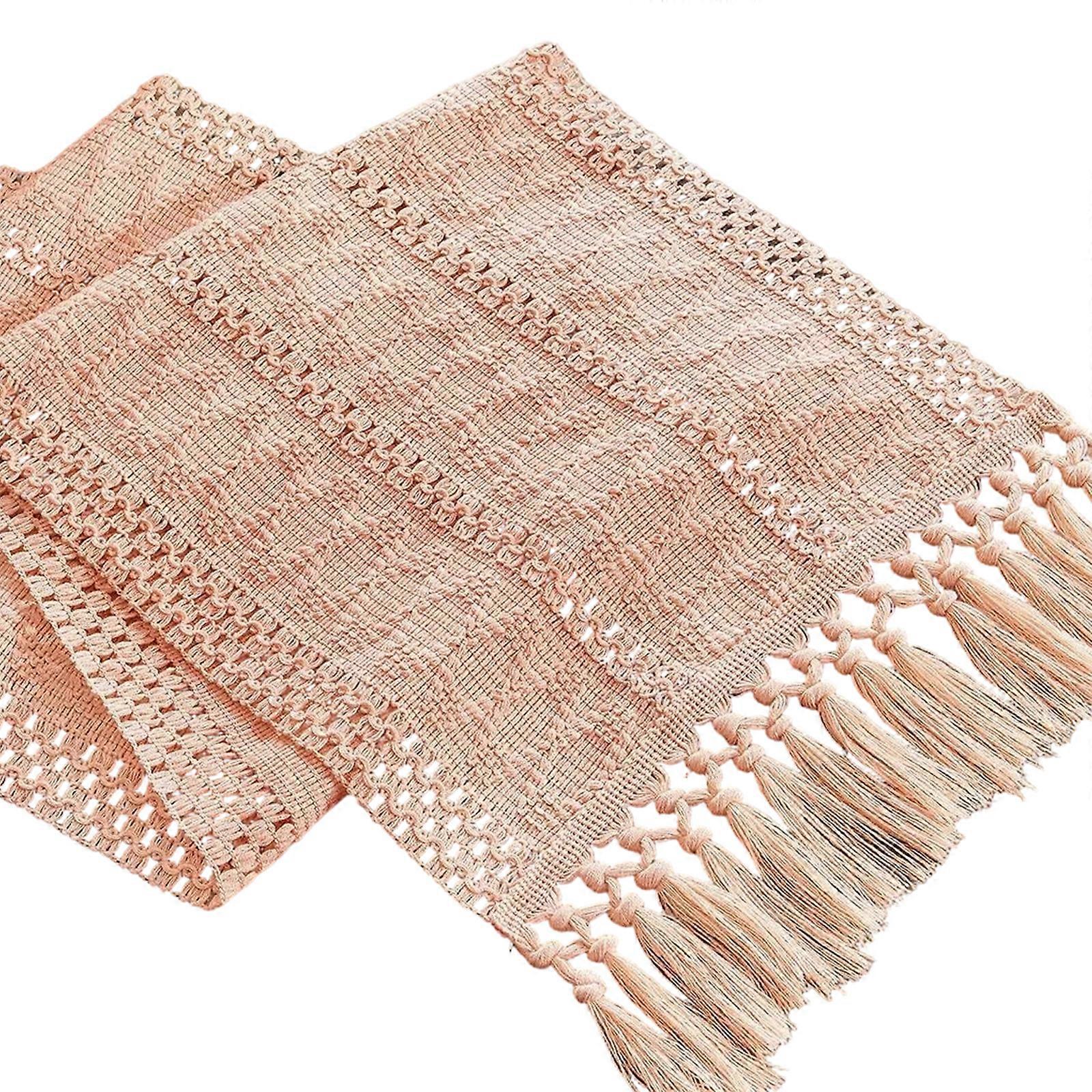 Cotton Linen Table Cover Textured Fringed Detail For Formal Dinner Setting 30x90 pink