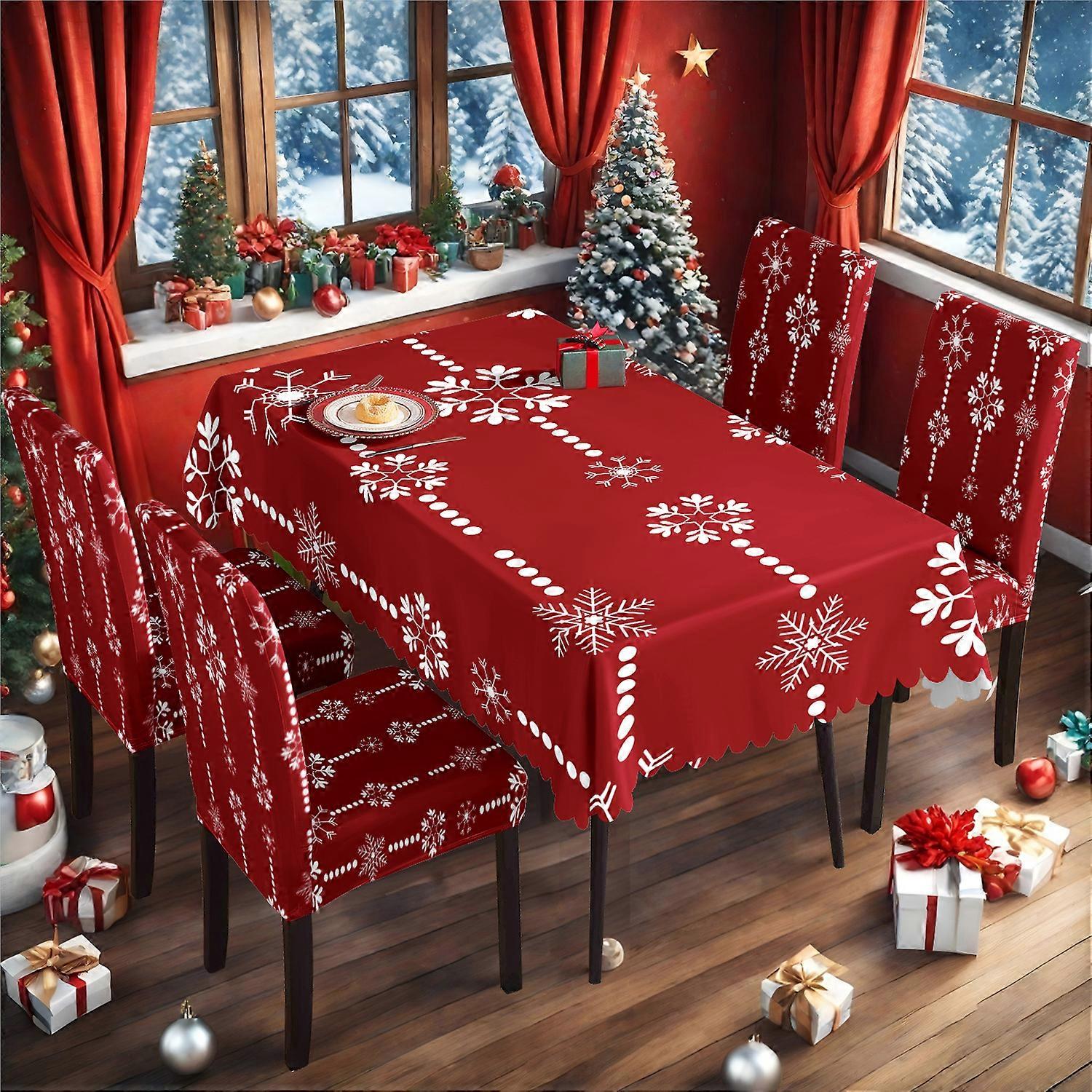 Classic original Christmas snowflake tablecloth waterproof rectangular Christmas holiday tablecloth coffee table tablecloth stretch chair cover
