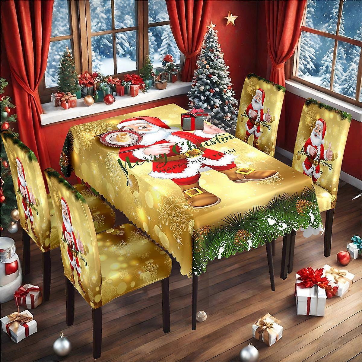 Original Santa Claus printed tablecloth waterproof tablecloth all-inclusive milk silk chair cover Christmas tablecloth TC-29 set (140*210cm