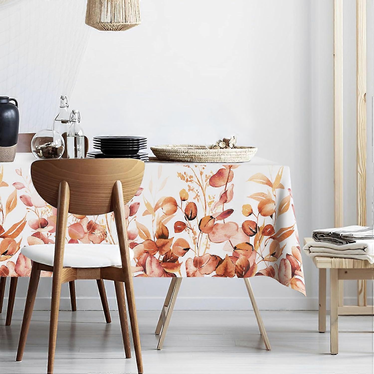 Orange Eucalyptus Leaves Fabric Waterproof Oxford Tablecloth,Rectangle Watercolor Wrinkle Oil-Proof Resistant Table Cover for Dining Table, Buffet Par