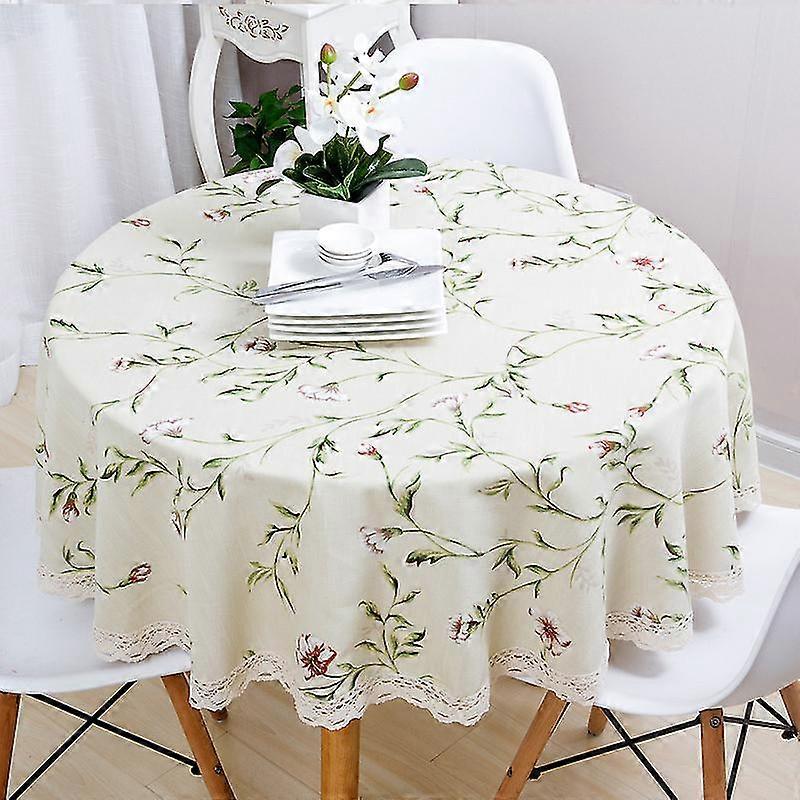 round Table Cloth 100cm Apricot Flower Garden Cotton Linen Tablecloth Stain Resistant Washable Reusable, Lace Edge