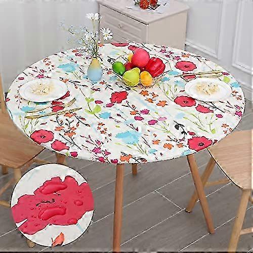 Round Fitted Tablecloth with Elastic Edge, Waterproof Oil Proof Plastic Table Cover, Vinyl Flannel Backed Table Cloth Fits 40"-44" Round Tables for Di