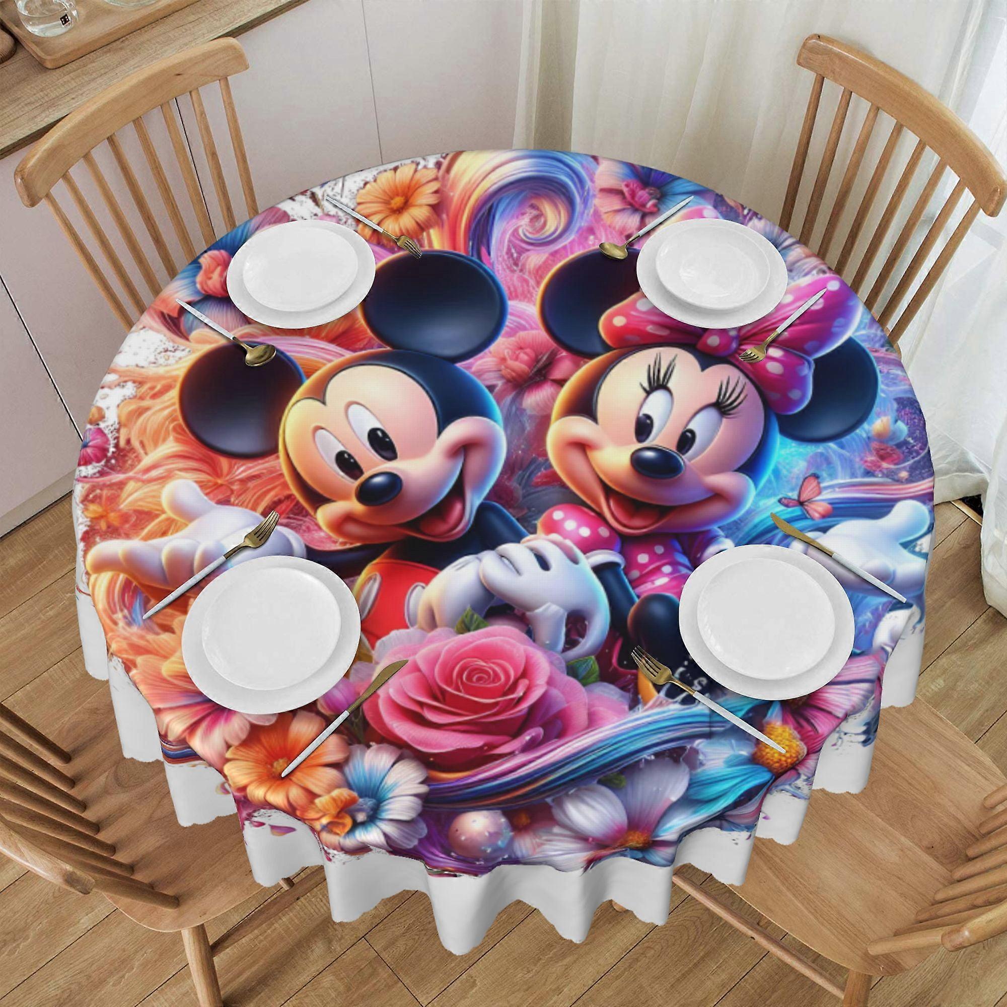Cartoon Mickey Mouse Round Tablecloth 60" - Stain & Water Resistant, Wrinkle-Free for Indoor/Outdoor Use