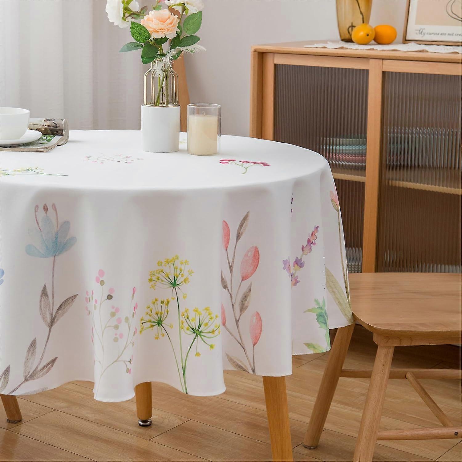 60 Inch Round Tablecloth Summer Floral Tablecloth - 60" Flower Polyester Table Cover Reusable Water Resistant for Spring Summer Outdoor Picnic Party H