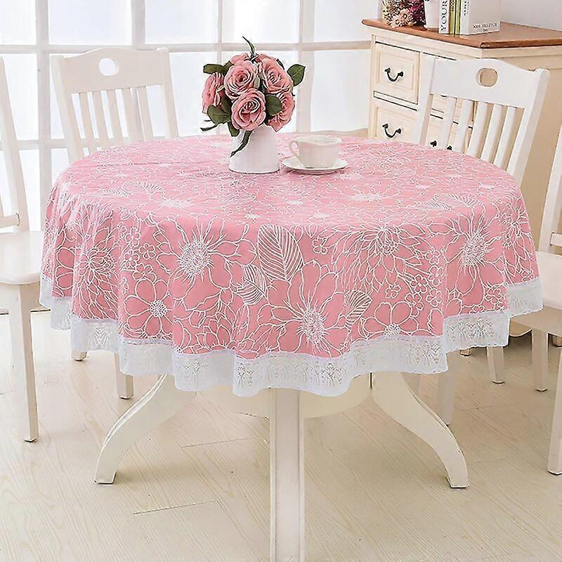 Round PVC Oilcloth Tablecloth, with Floral and Lace Pattern, Waterproof Stain