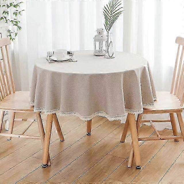 Elegant Solid Color Round Tablecloth with Lace Trim - Cotton Linen Table Cover for Wedding Dining Tea Party Decor