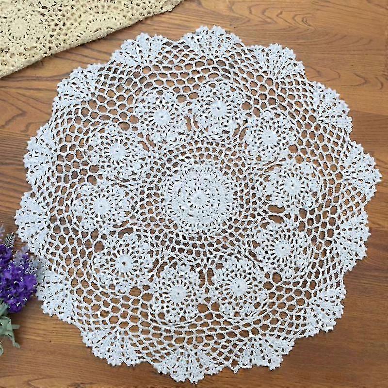Round Table Cover for Banquet Events with Cotton Lace Doily Mat