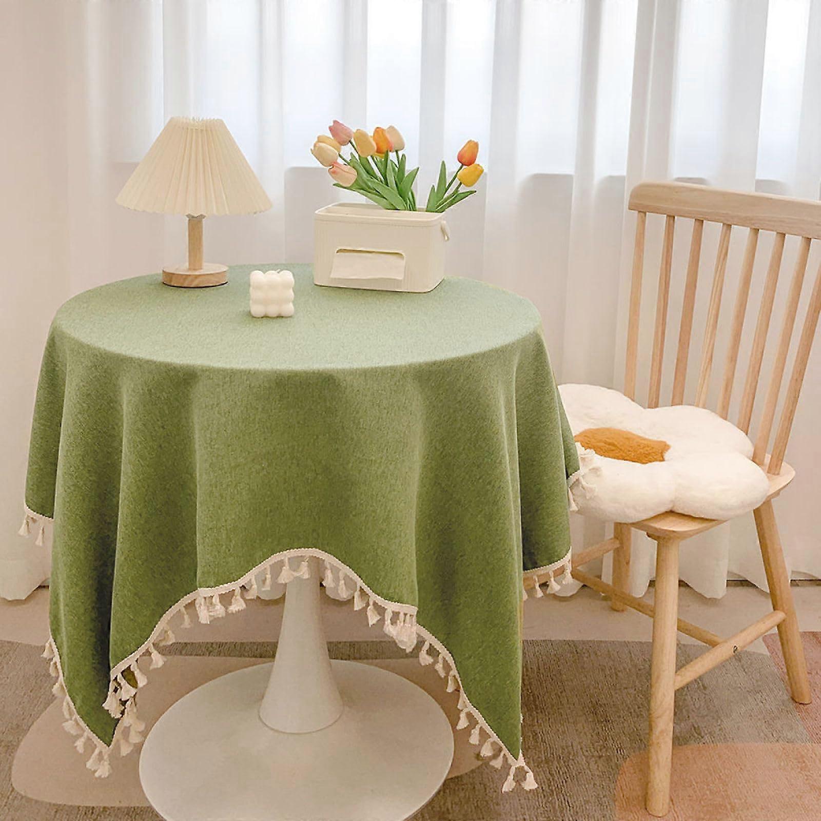Rectangular Tablecloth 80x120cm Cotton Washable Table Cover with Tassels for Indoor and Outdoor Use Green Party Kitchen