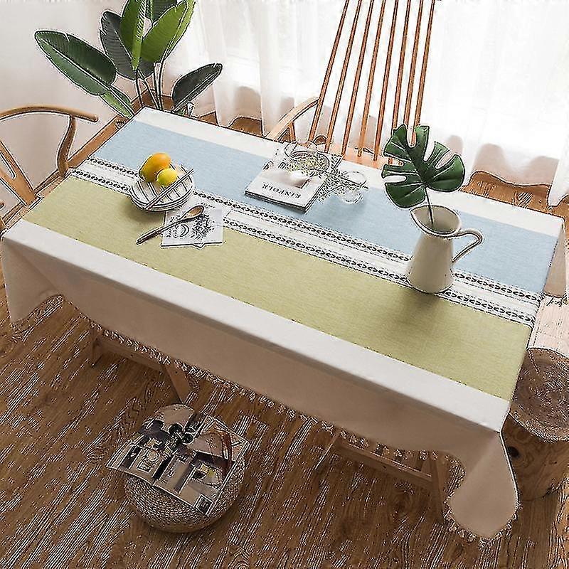 Material: Made of cotton and linen, thick and natural fabric, more resistant to wrinkles than other materials. Advanced technology and high quality dyes ensure good fade resistance. Natural linen fiber has a good effect of inhibiting bacteria and fungi, and this effect can improve the safety of our meals.Features: The surface of the tablecloth uses advanced 3D stereo jacquard, so that you don't have to worry about it wearing out or fading. With beige tassels this tablecloth vintage and elegant. Multiple Applications: Suitable for most indoor and outdoor tables, such as: kitchen, dining room, yard, garden, family activity room, cafe, party; or can be used as picnic cloth, dust cloth, decoration cloth.Care: Machine wash cold with mild detergent, do not bleach, line dry and keep warm, iron and use a cotton set. Best to hand wash, lay flat and dry.Quantity delivered: 1 pieceSize:140*180cm