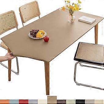 Toalha de mesa retangular de couro montada, toalha de mesa de borda elástica, toalha de mesa lavável para ambientes externos, pátio, cozinha e sala de jantar - Brown||6FT 183x75CM