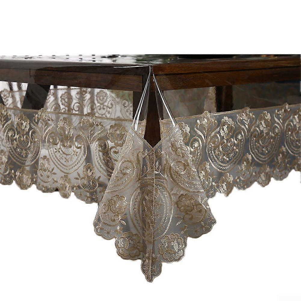 Elegant Lace Edged PVC Tablecloth Coffee A Rectangular 60x120 Cm PVC Material Lace Trim Wipeable Dining Cover
