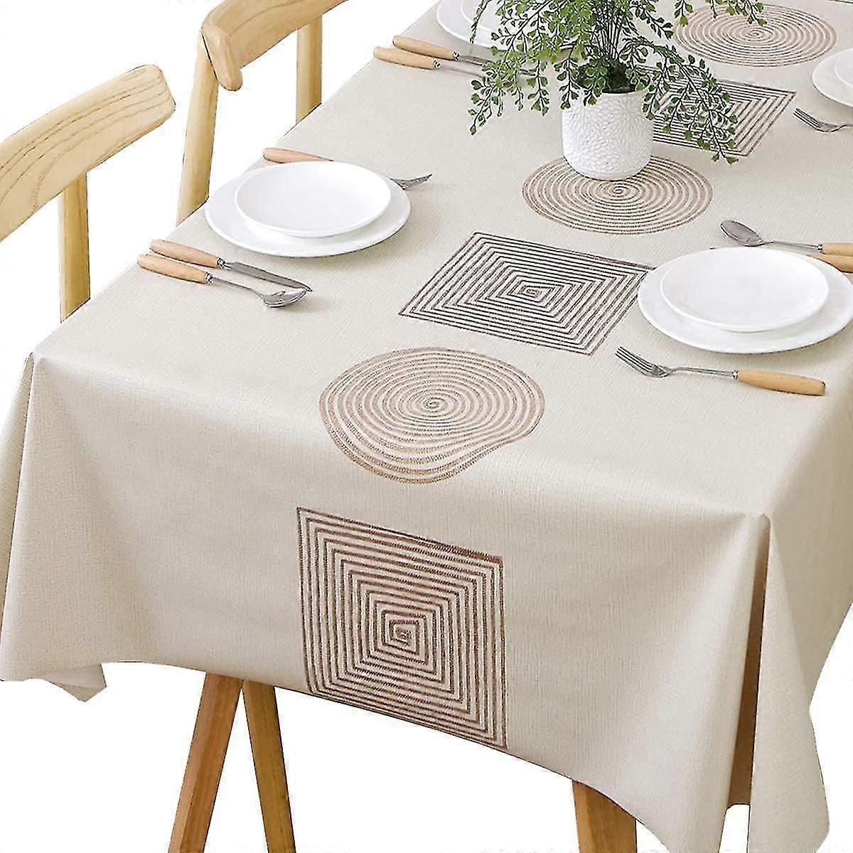 Rectangular Waterproof PVC Table Cloth, Plastic Table Cloth 140 x 220CM Stain and Oil Proof, Beige Table Cloth for Kitchen Cafe Dining Table