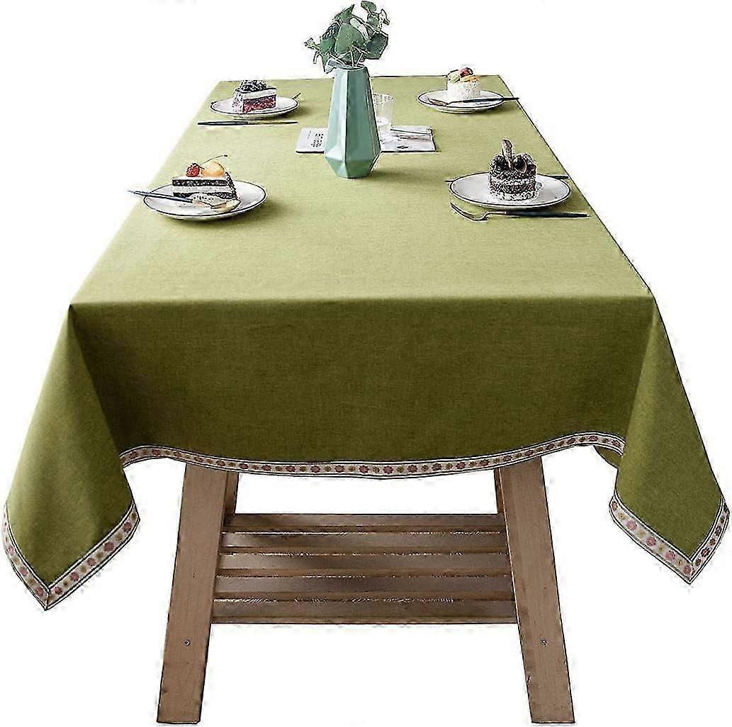 Linen Textured Solid Tablecloth with Flower Pattern Edge Farmhouse Dust-Proof Table Cloth for Kitchen Dinning Tabletop Decoration (Green, 55x63 Inch)