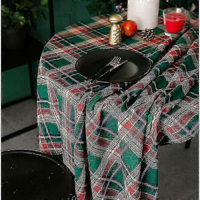 Christmas plaid table cloth ins style nordic retro round tablecloth american plaid tablecloth coffee table cover cloth