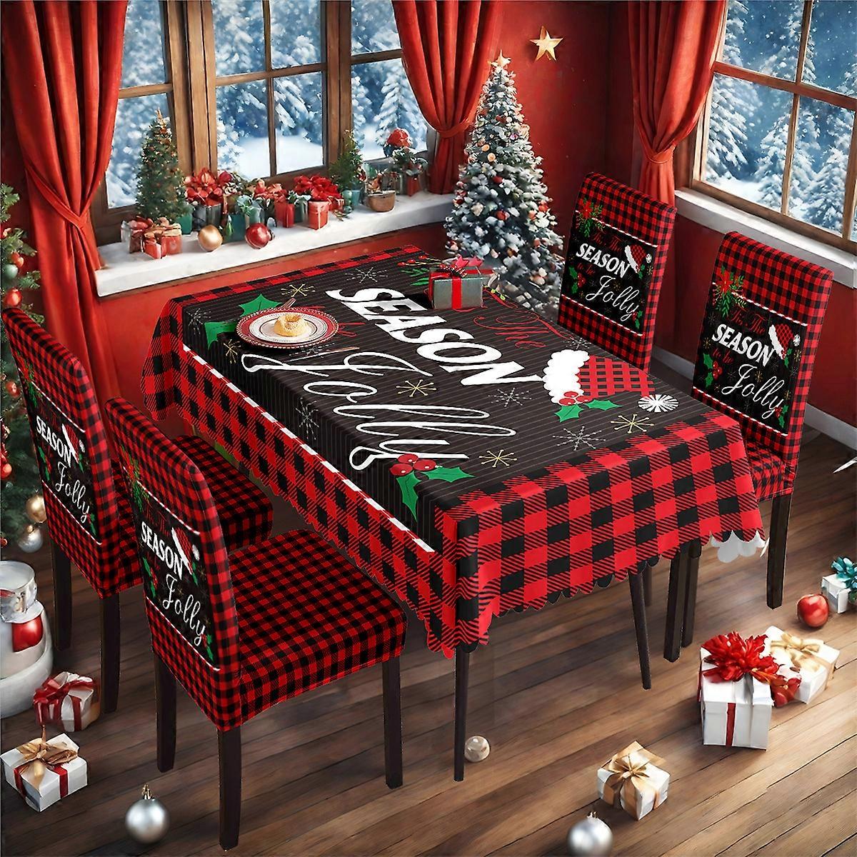 Christmas hot-selling tablecloth red plaid waterproof tablecloth chair cover Christmas theme tablecloth chair cover TC-36 set (140*210cm waterproof