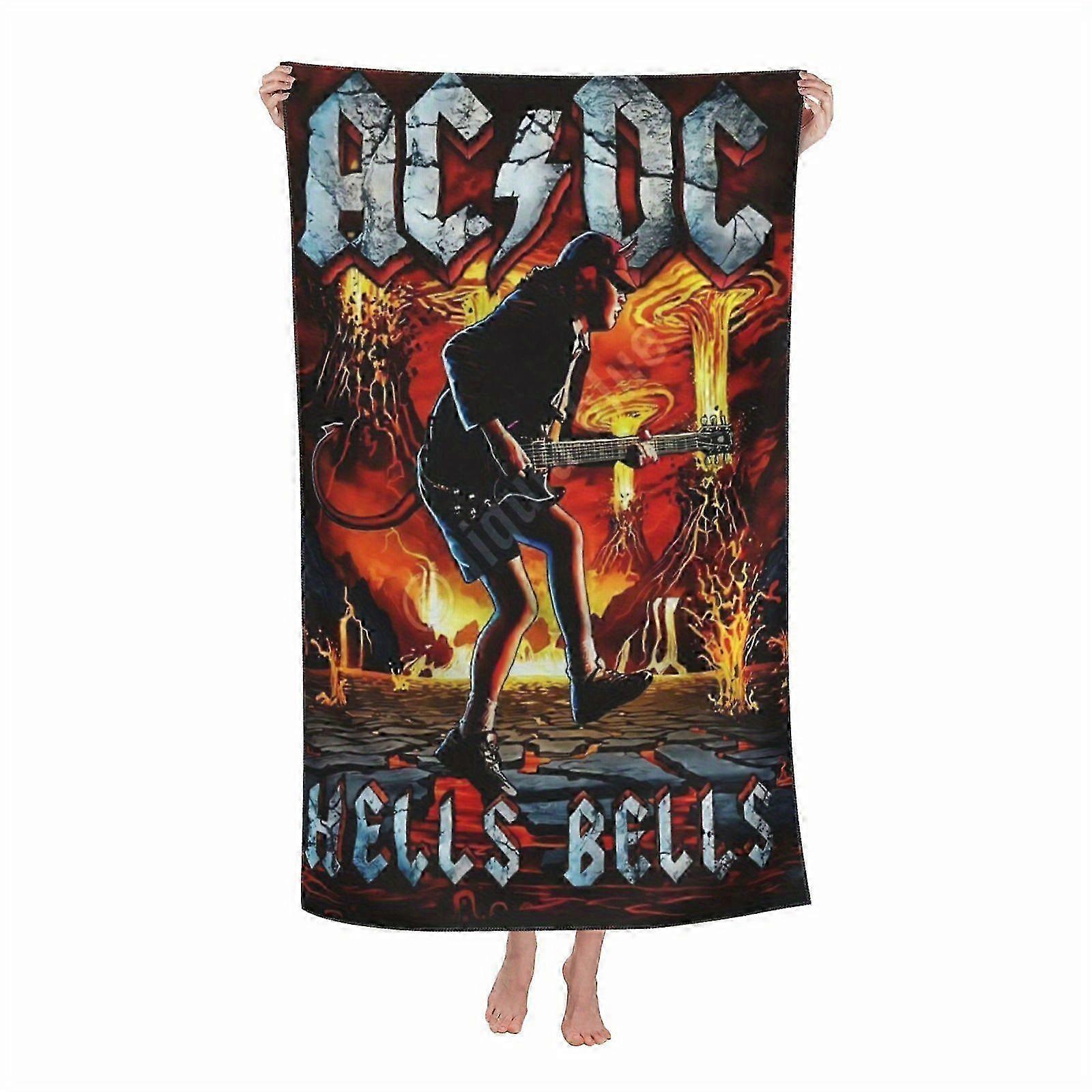 2025 ACDC Hells Bells Microfiber Beach Towel - Lightweight, Quick-Dry, Absorbent, Contemporary Style with Guitarist Design - Ideal for Swimming, Gym,