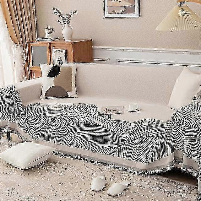 Stripe Chenille Sofa Towel With Chaise Couch Cover Universal Furniture Armchair Slipcovers One Piece Soft