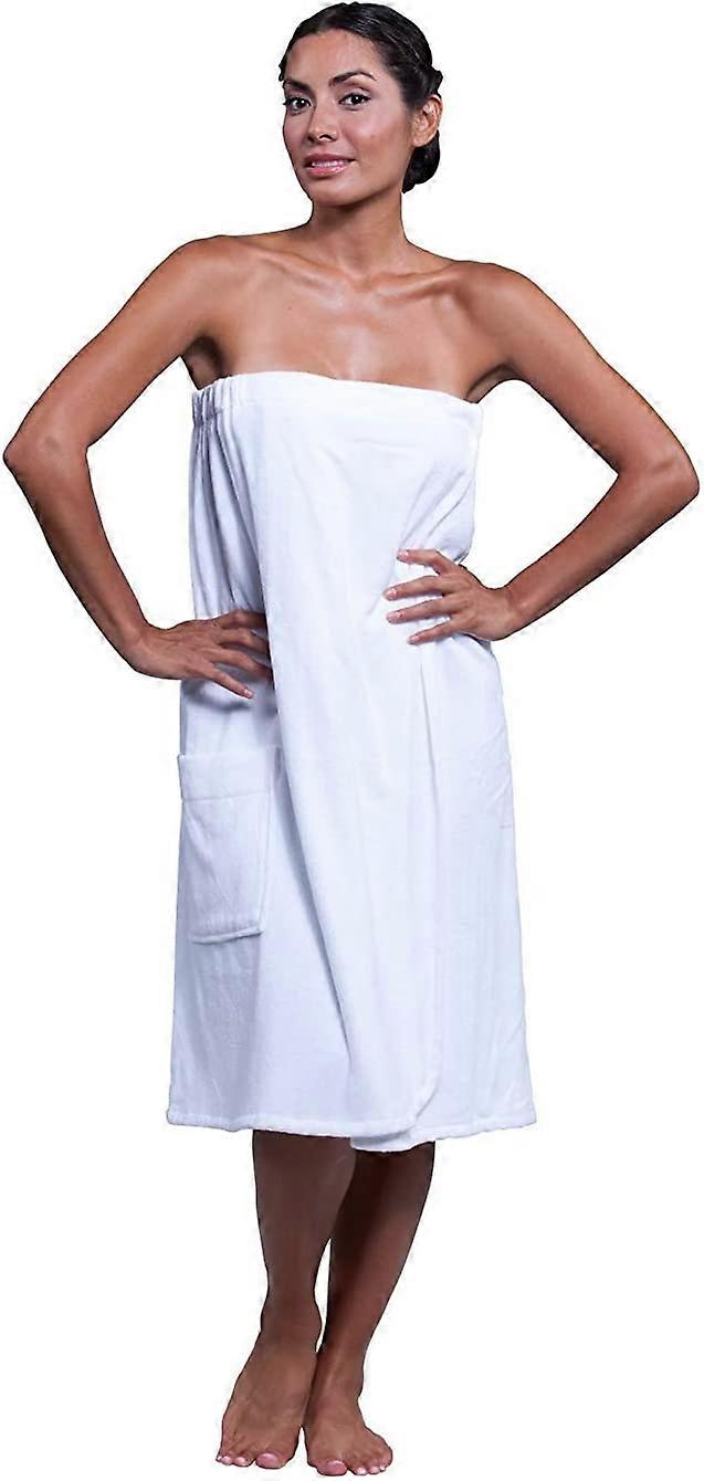 Boca Terry Womens Spa Wrap - 100% Cotton Spa, Shower, Bath and Gym Towel w Snaps - White XXL