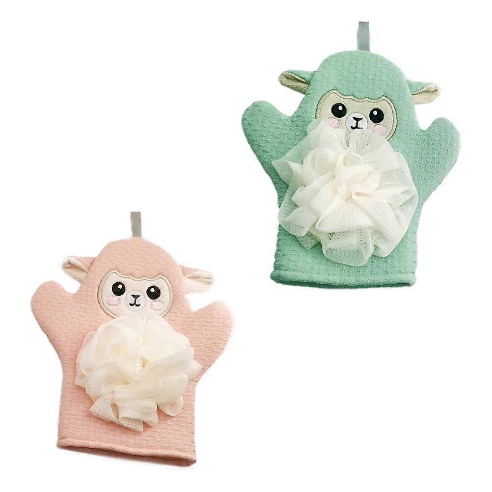 Cartoon Shower Balls Dual-Purpose Bath Towels with 2Pcs Bathing Gloves